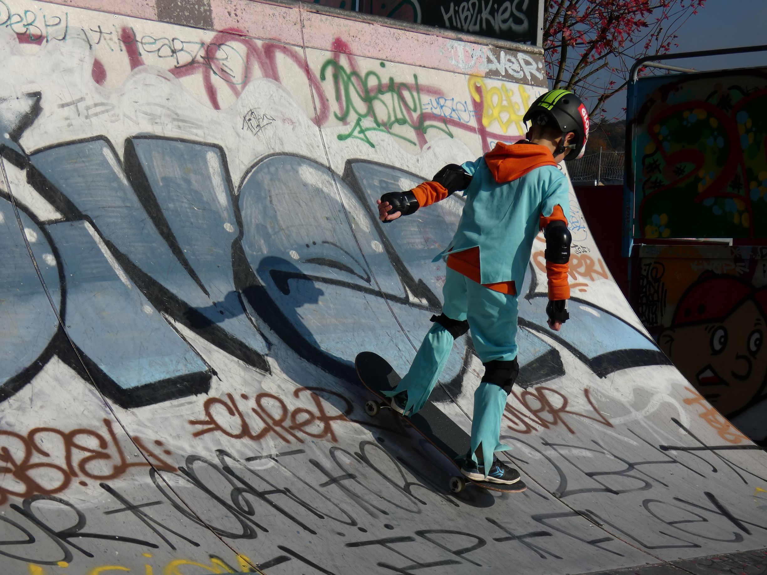 (Roller, protection genoux/poignets/coudes, et casque).
